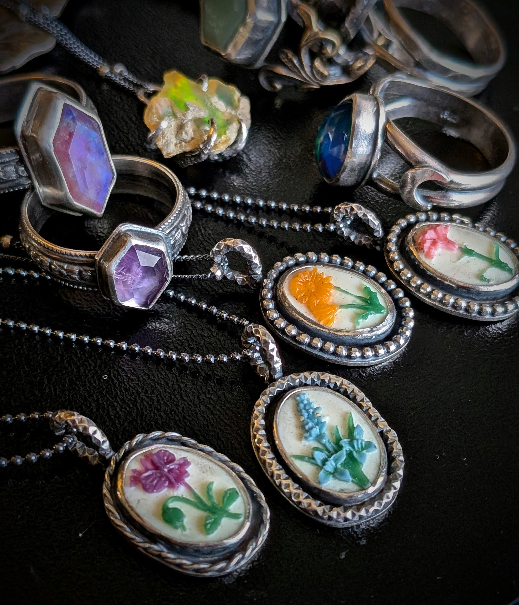 - Blue Bluebonnets: Bluebonnets symbolize resilience and renewal (20" chain)