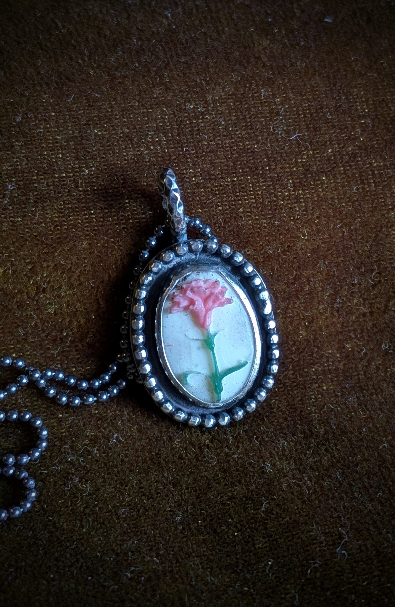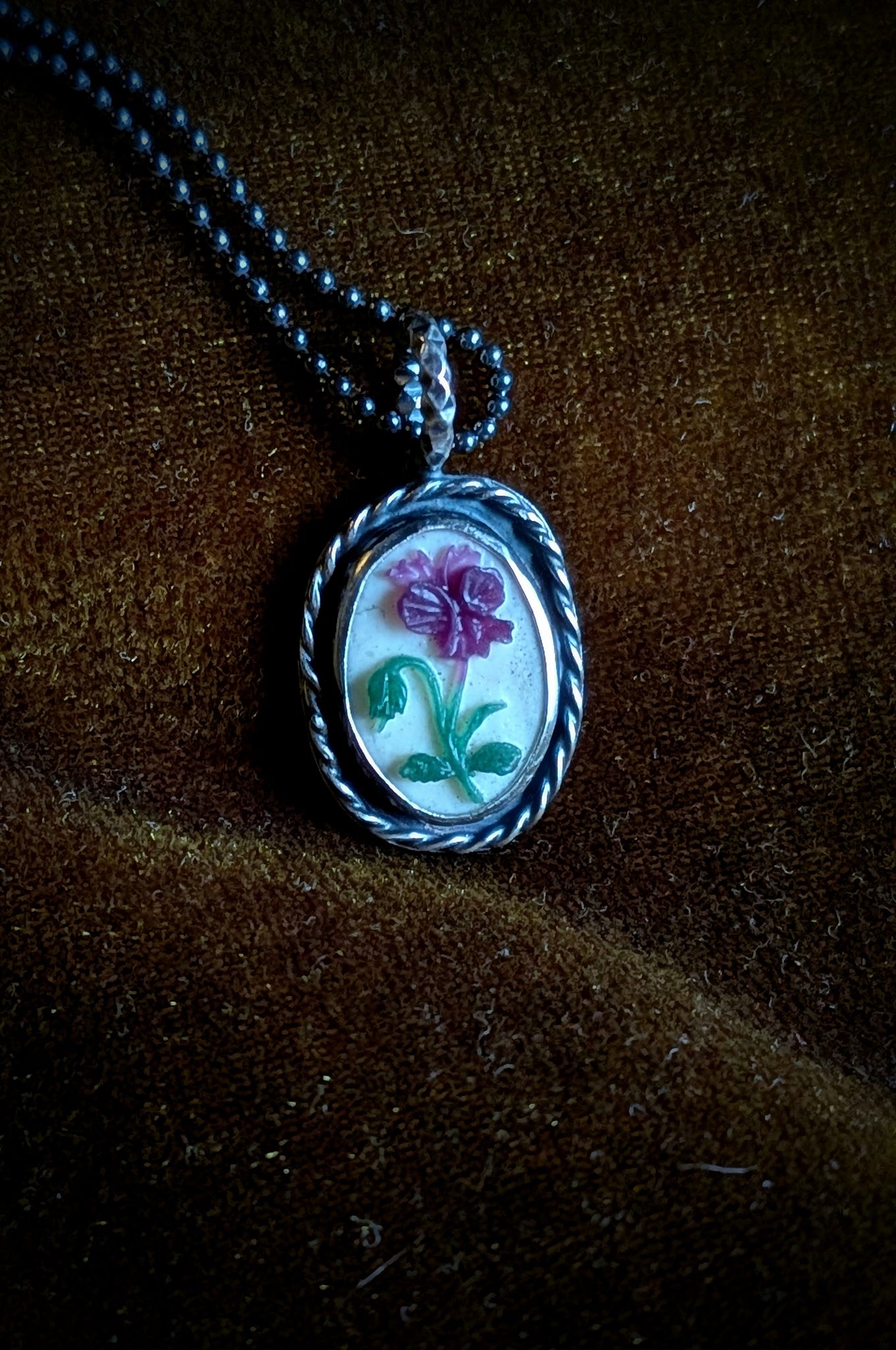 These floral cameos feature vintage new old-stock cameos. This listing is for 1 (one) of the cameos pictured, just make your selection when adding to the cart. Sterling silver pendant and chain.